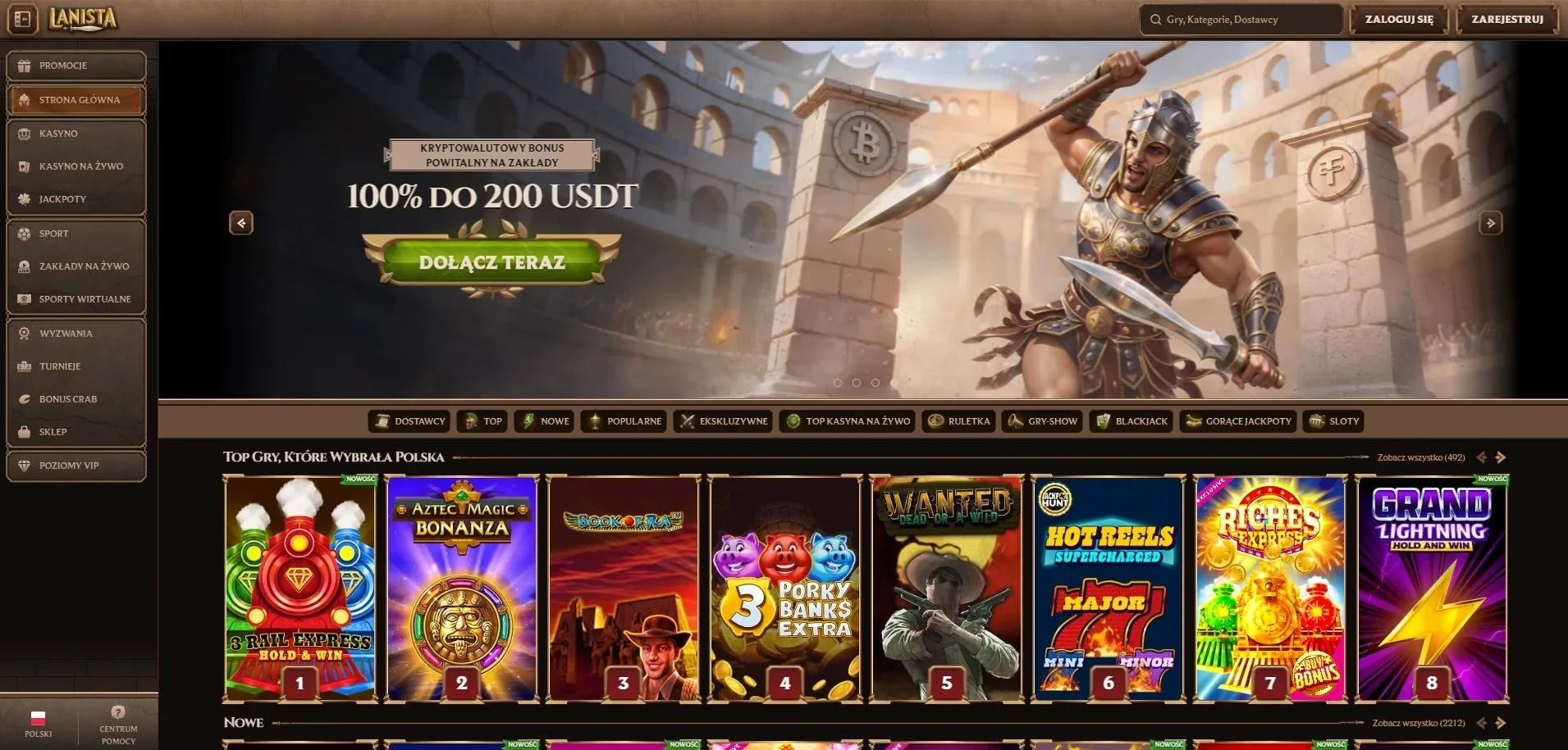 Platforma Lanista casino pojawiła się na rynku z szeroką ofertą – ponad 5000 tytułów, blisko 100 dostawców oprogramowania i obsługa rozliczeń w złotówkach. Brzmi solidnie, ale czy rzeczywiście sprawdza się w praktyce? W tej recenzji sprawdzamy wszystko: od rejestracji przez bonusy aż po rzeczywisty czas wypłaty środków.
