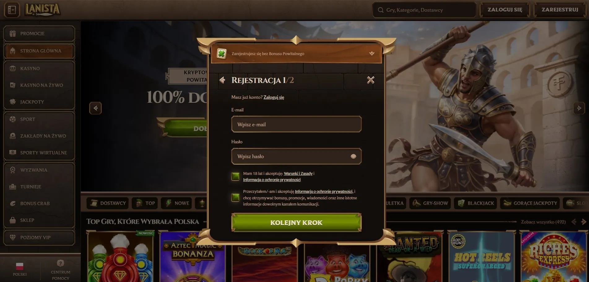 Założenie konta w Lanista kasyno pl nie zajmuje więcej niż kilka minut. Cały proces przebiega online, bez konieczności wysyłania dokumentów na etapie rejestracji. Lanista casino rejestracja wygląda następująco: