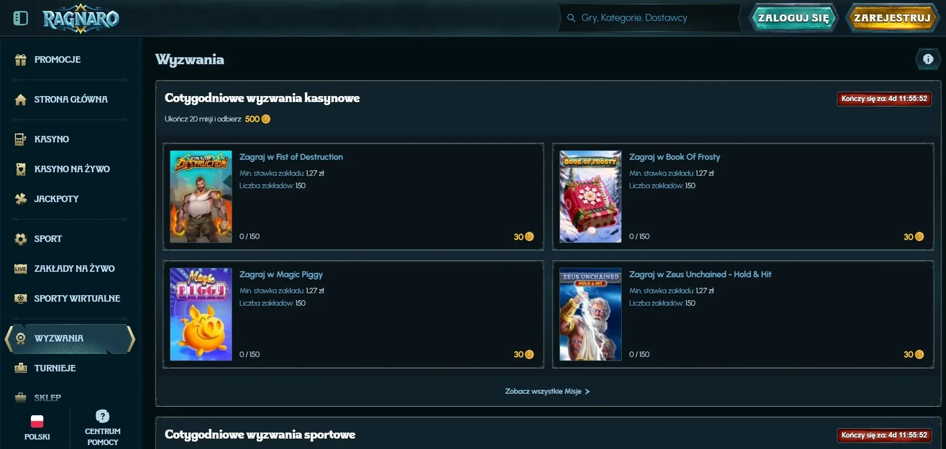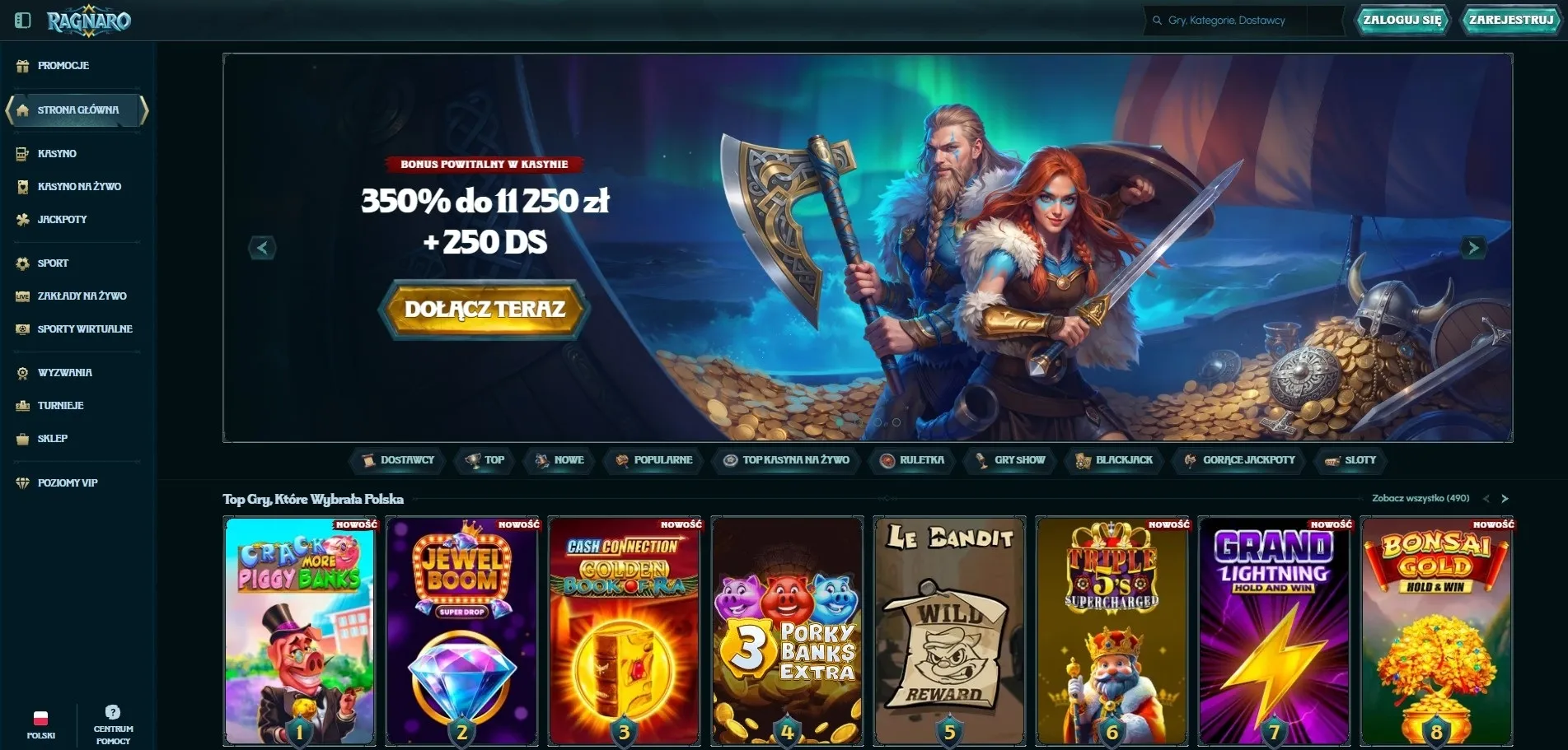 Strona główna Ragnaro nie przytłacza – układ jest czytelny, sekcje łatwo znaleźć, a samo ładowanie zajmuje chwilę nawet przy przeciętnym łączu. Dla polskich graczy istotne jest to, że interfejs działa w języku polskim i nie trzeba przełączać się między zakładkami, żeby trafić tam, gdzie trzeba. Kasyno nie zasypuje nowicjuszy ścianą tekstu – nawigacja jest intuicyjna od pierwszego wejścia.