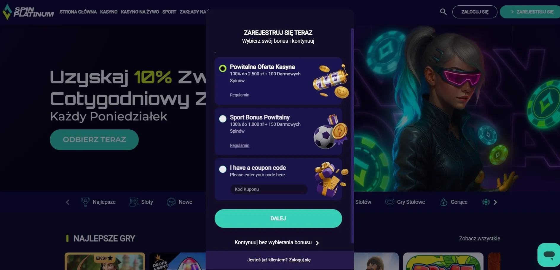 Wejdź na spinplatinum.com
