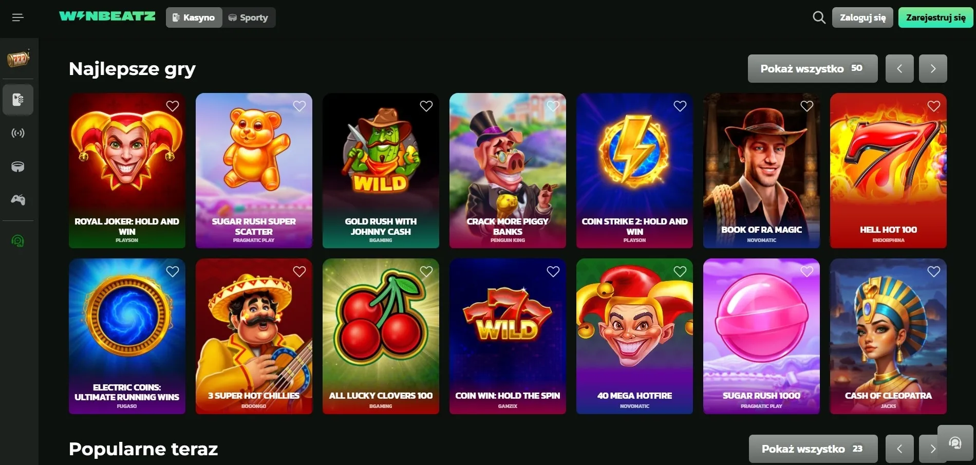 Dostawcy gier to czołówka rynku: Pragmatic Play, Play’n GO, NetEnt, Hacksaw Gaming, Endorphina, Spinomenal, Gamzix, Gamebeat, Belatra Games i kilkanaście innych studiów.