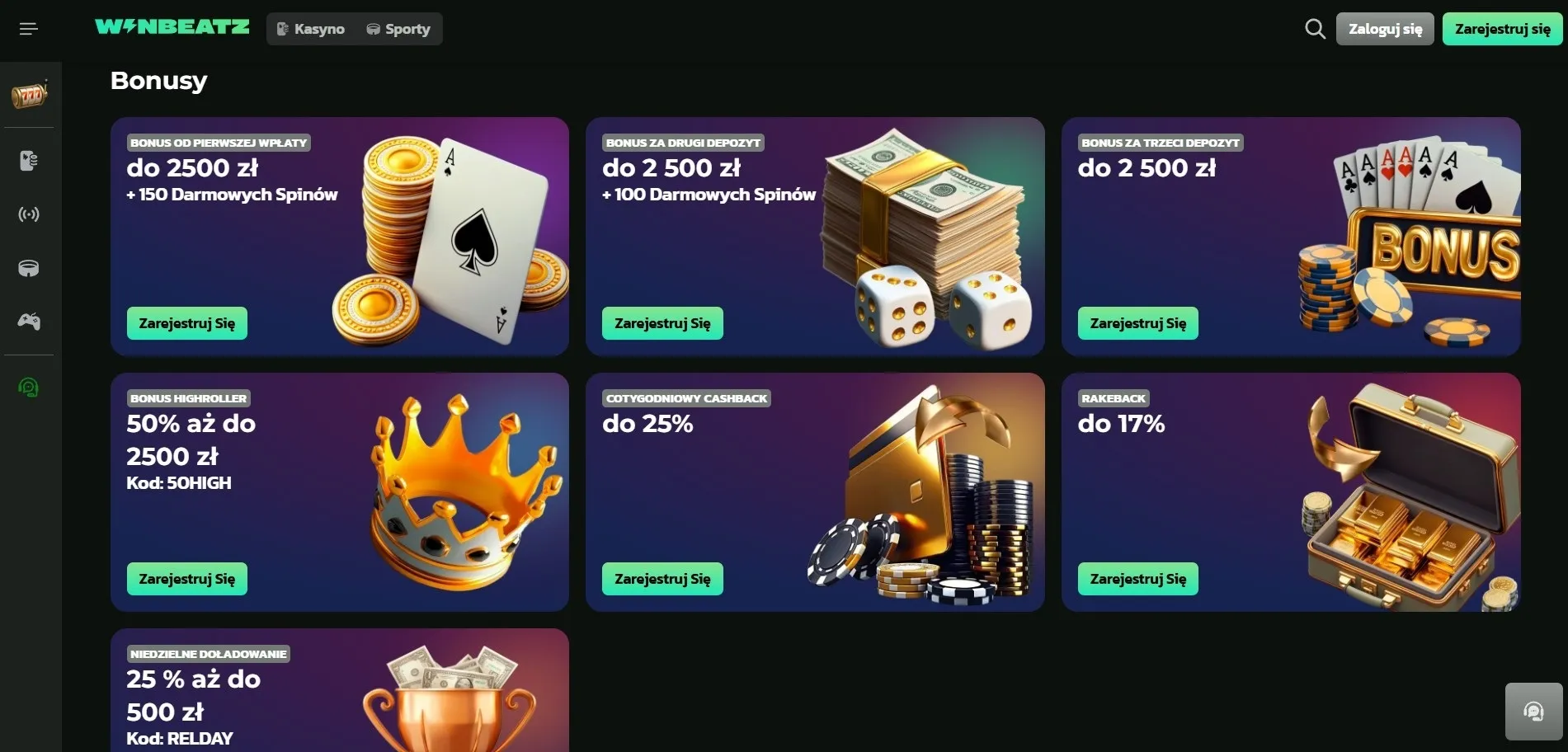 Oferta powitalna to jeden z pierwszych elementów, który gracze sprawdzają przed rejestracją. W przypadku tej platformy nie ma powodów do rozczarowania – system nagród dla nowych użytkowników jest rozbudowany i obejmuje trzy pierwsze depozyty. Win Beatz darmowe spiny i bonusy gotówkowe łączą się w jeden spójny pakiet powitalny.
